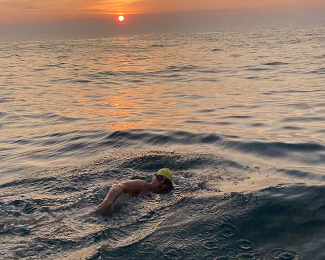 Long distance swimming in Open Water requires a very different training regime to pool swimming. The training volume can be considerable, but also must be balanced with the risk of aggravating existing injuries.